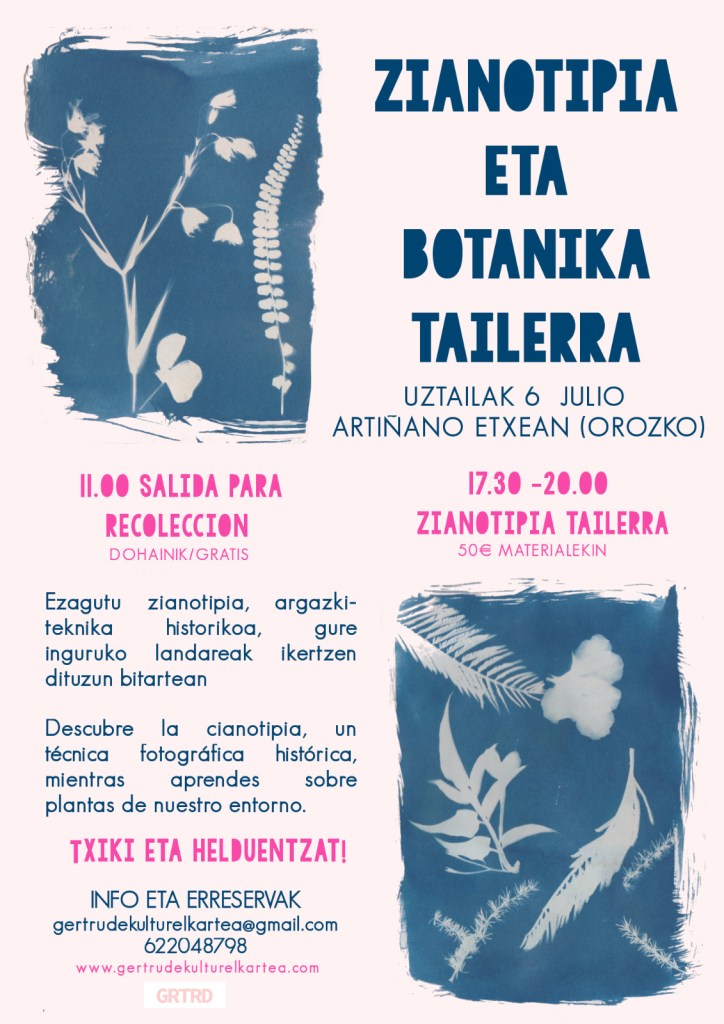 Siguiendo la estela de la pionera Anna Atkins, botánica y considerada una de las primeras fotógrafas de naturaleza, empezaremos la jornada dando un paseo por los alrededores de Artiñano Etxea para reconocer y recolectar algunas de las plantas de nuestro entorno.