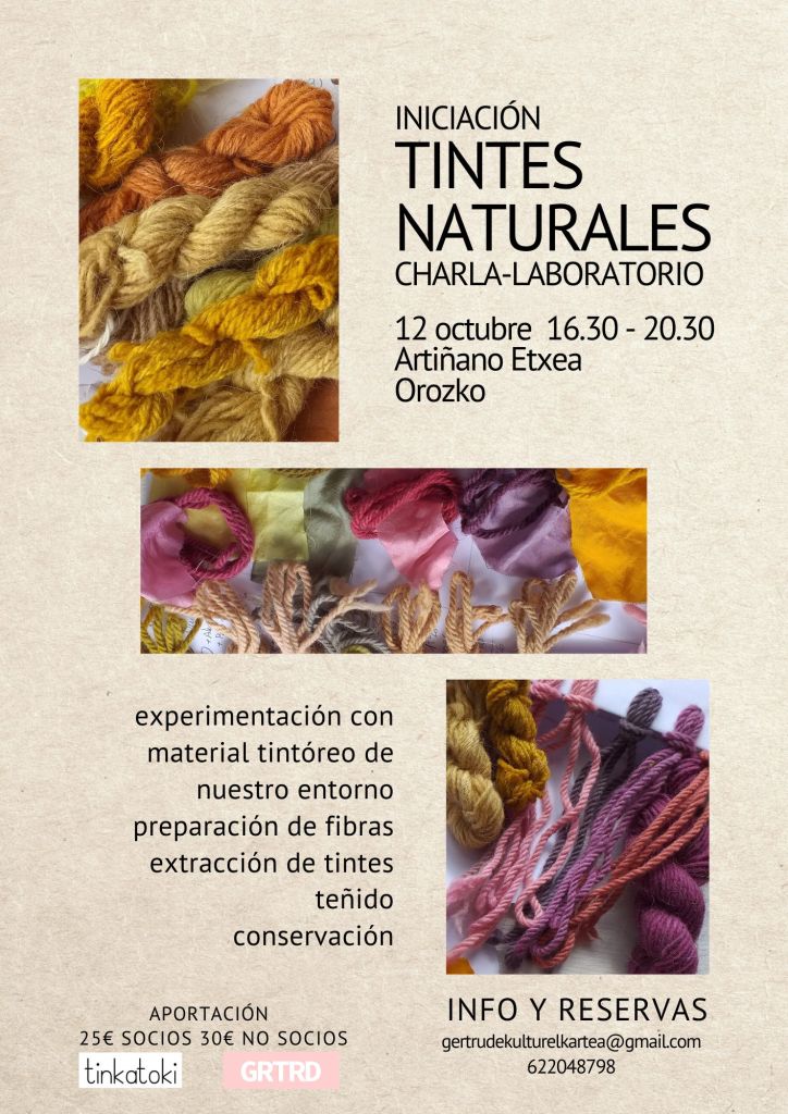 Este otoño retomamos con mucho colorido el ciclo de actividades L.U.Z. con Tinkatoki, quien vendrá a Orozko para ofrecer una charla-laboratorio para iniciarnos en el precioso universo de los tintes naturales.